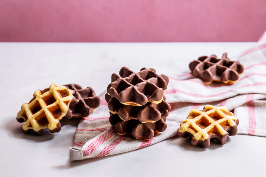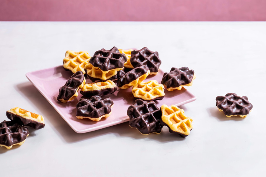 Een wafeltje in mini formaat naar traditioneel recept, bereid met verse boter en eieren en bedekt met een heerlijk laagje zachte fondant chocolade... ‘nee’ zeggen wordt bijzonder moeilijk.